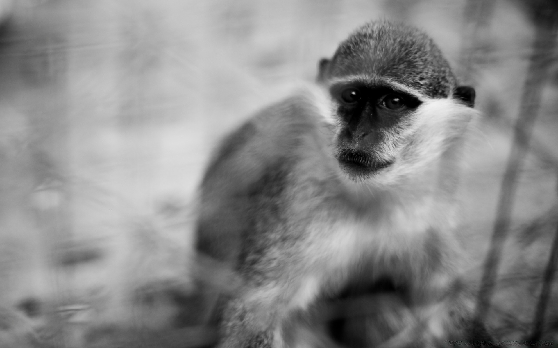 Foto monocromatica di una scimmia triste