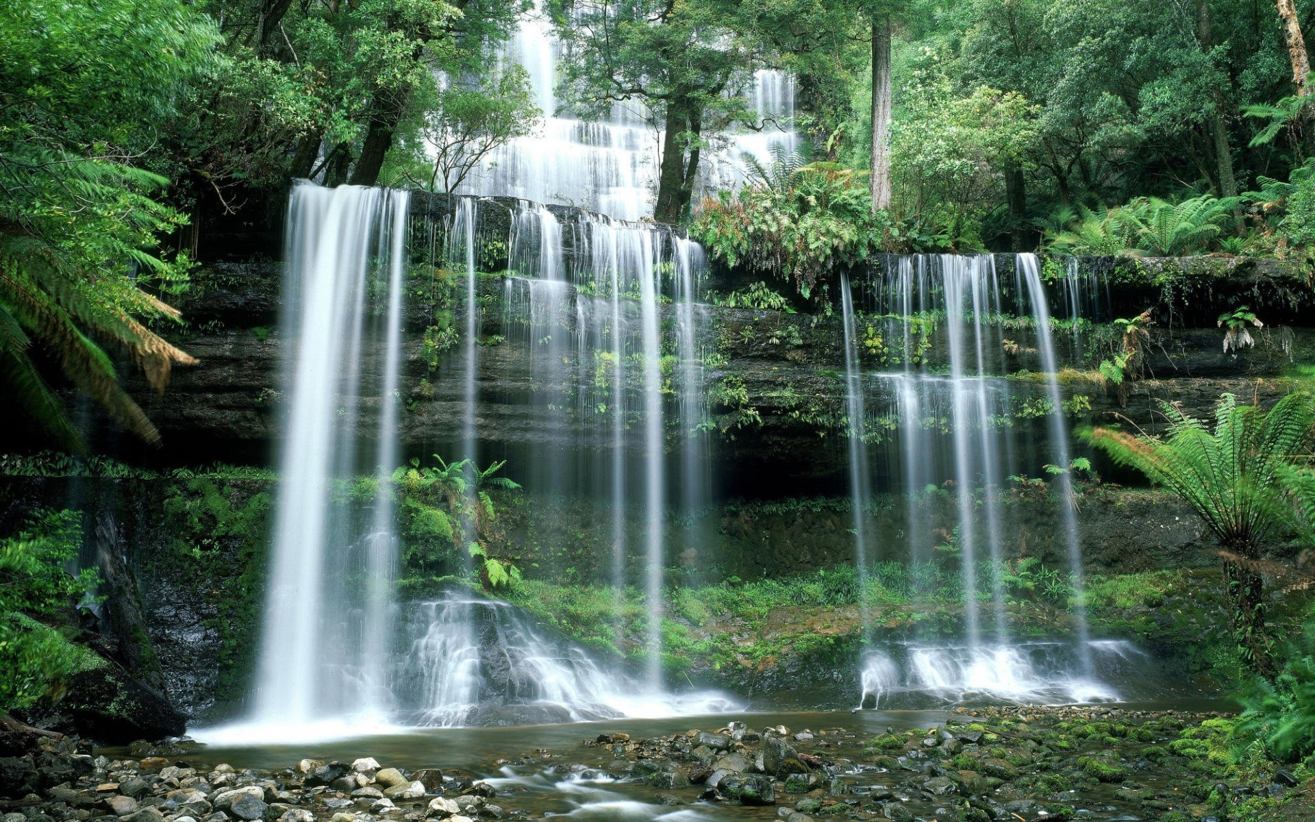 Cascata tropicale con muschio