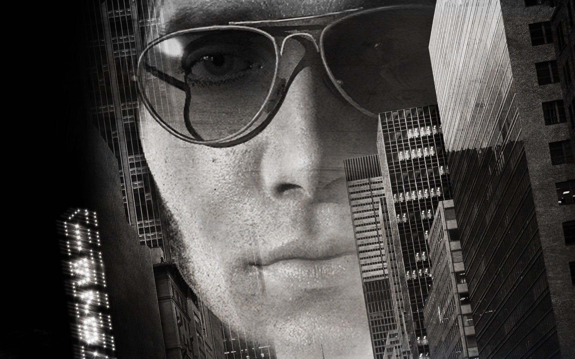 Un uomo con gli occhiali guarda attraverso la città