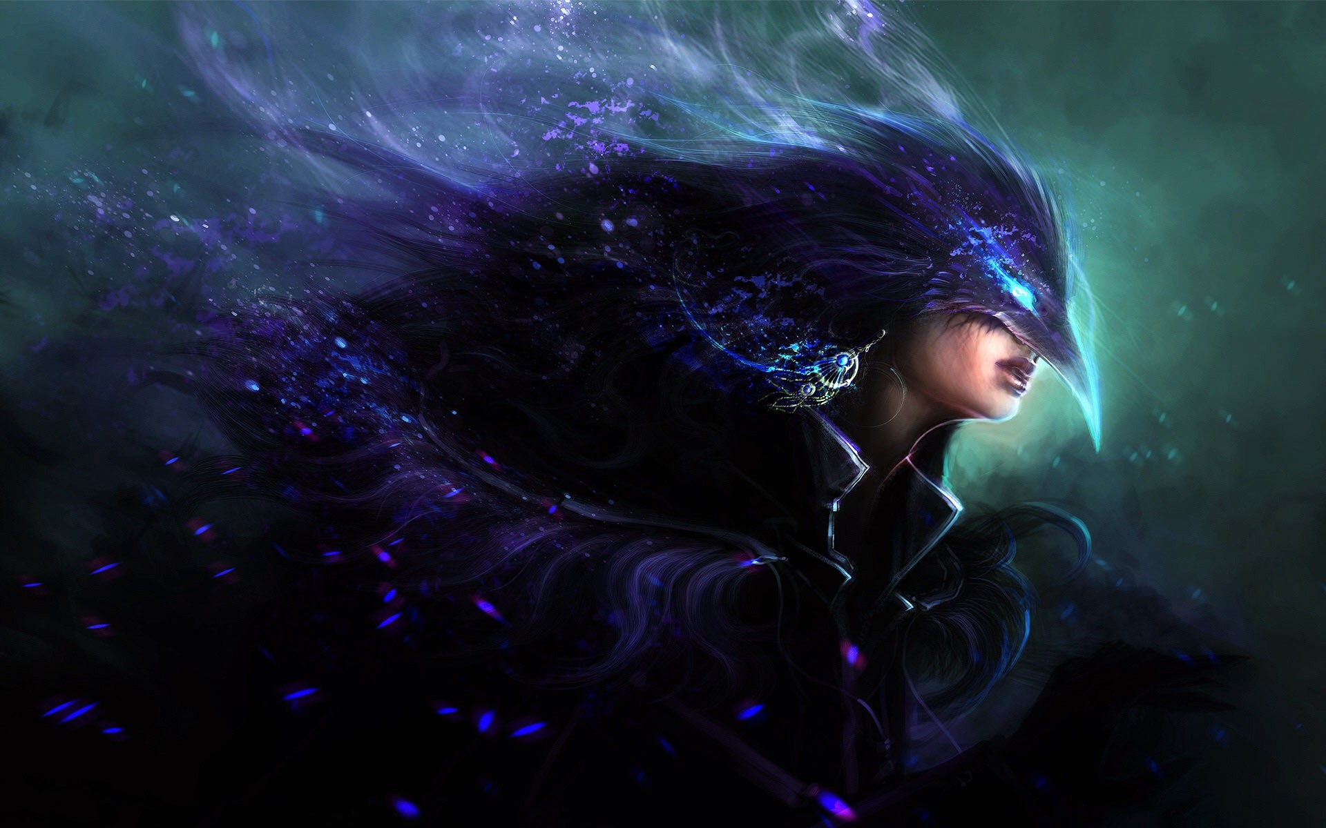 Ragazza stilizzata come un uccello blu