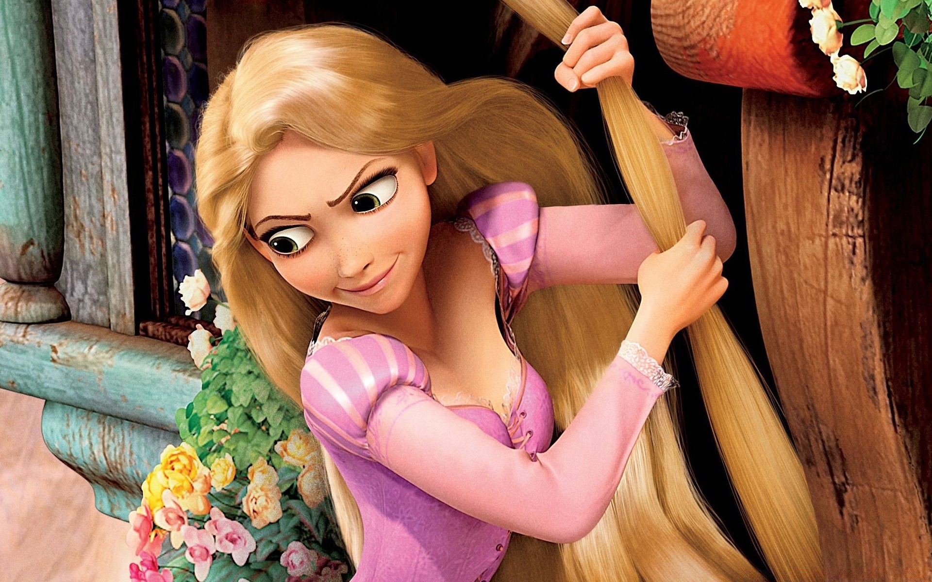 La ragazza del cartone animato Rapunzel. Rapunzel sulla torre