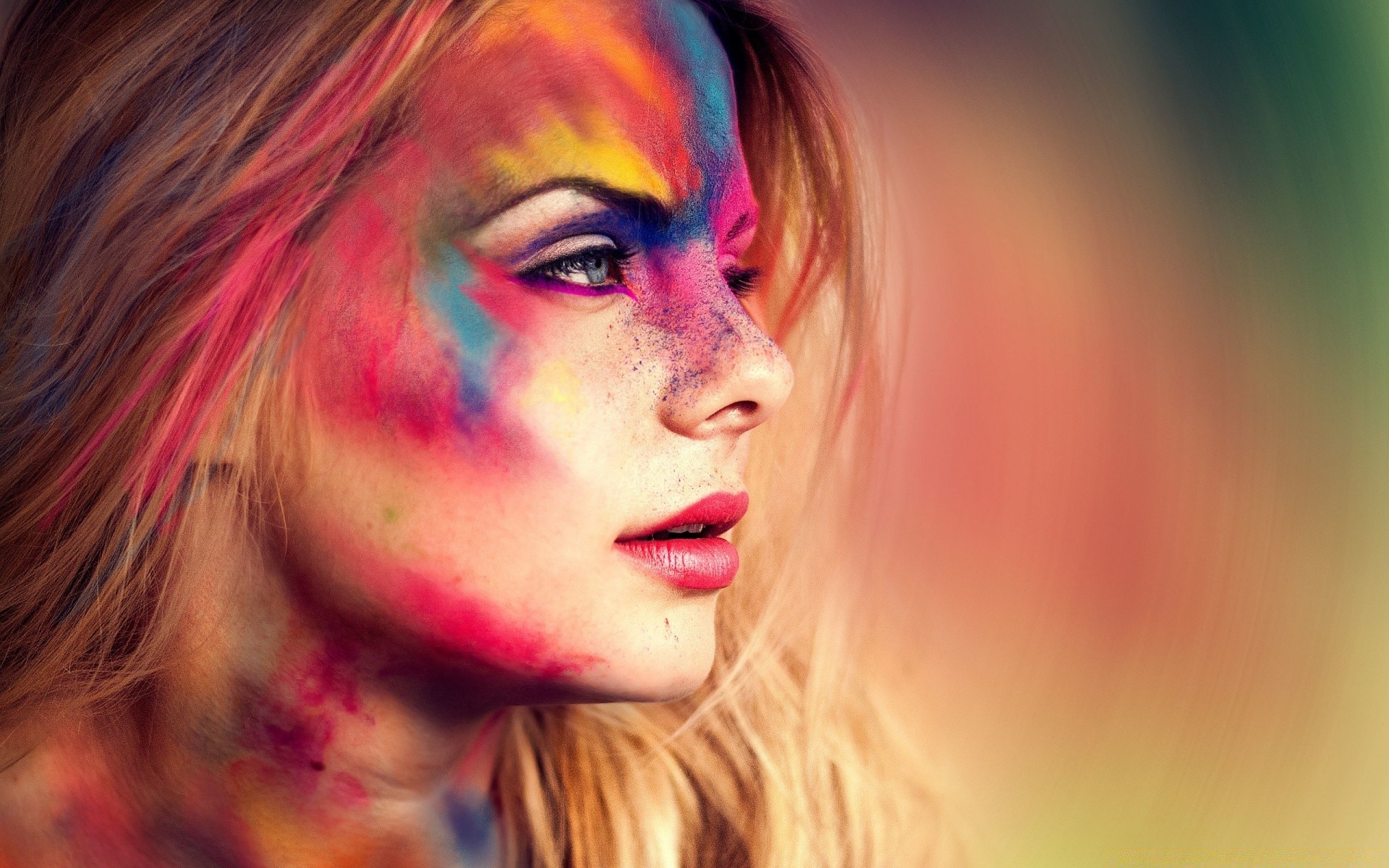 Ritratto di ragazza, colori vivaci e vernice