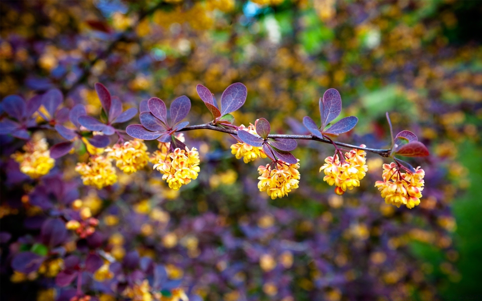 Ramo con fiori gialli e foglie viola