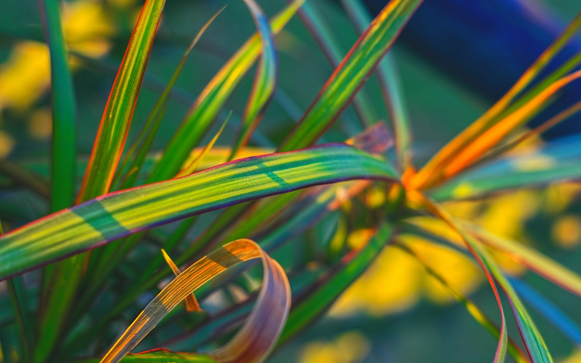 Pianta tropicale con foglie sottili sotto i raggi del sole