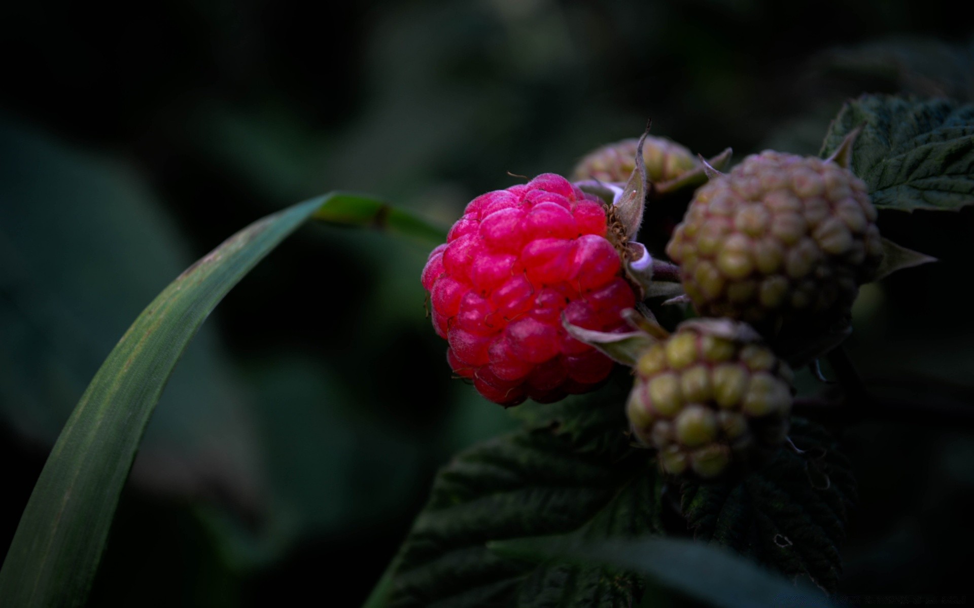 Fotografia macro di lamponi forestali di ottima qualitàFotografia macro di lamponi forestali di ottima qualità