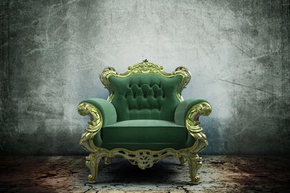 Sedia verde vintage contro il muro grigio