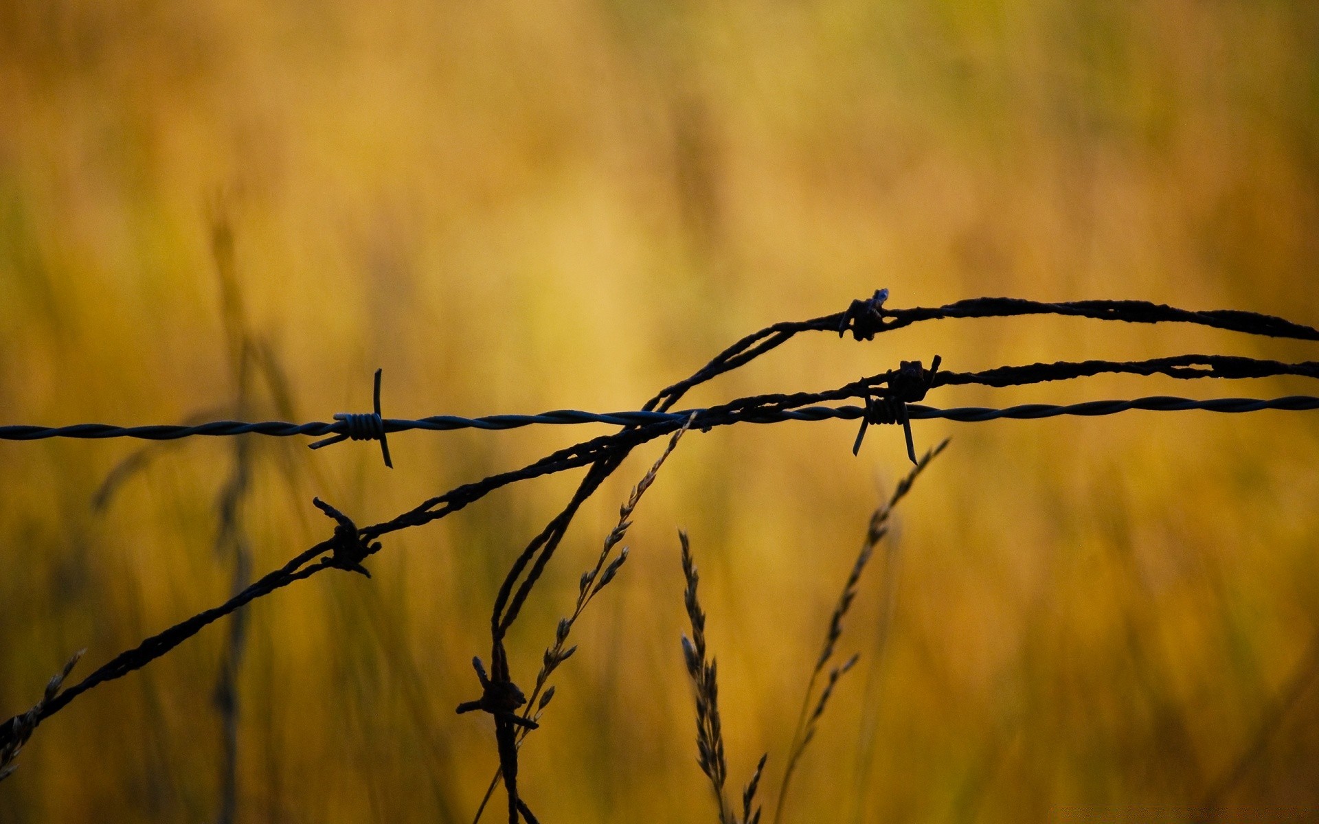 Ragazza dietro la recinzione sullo sfondo della guerra