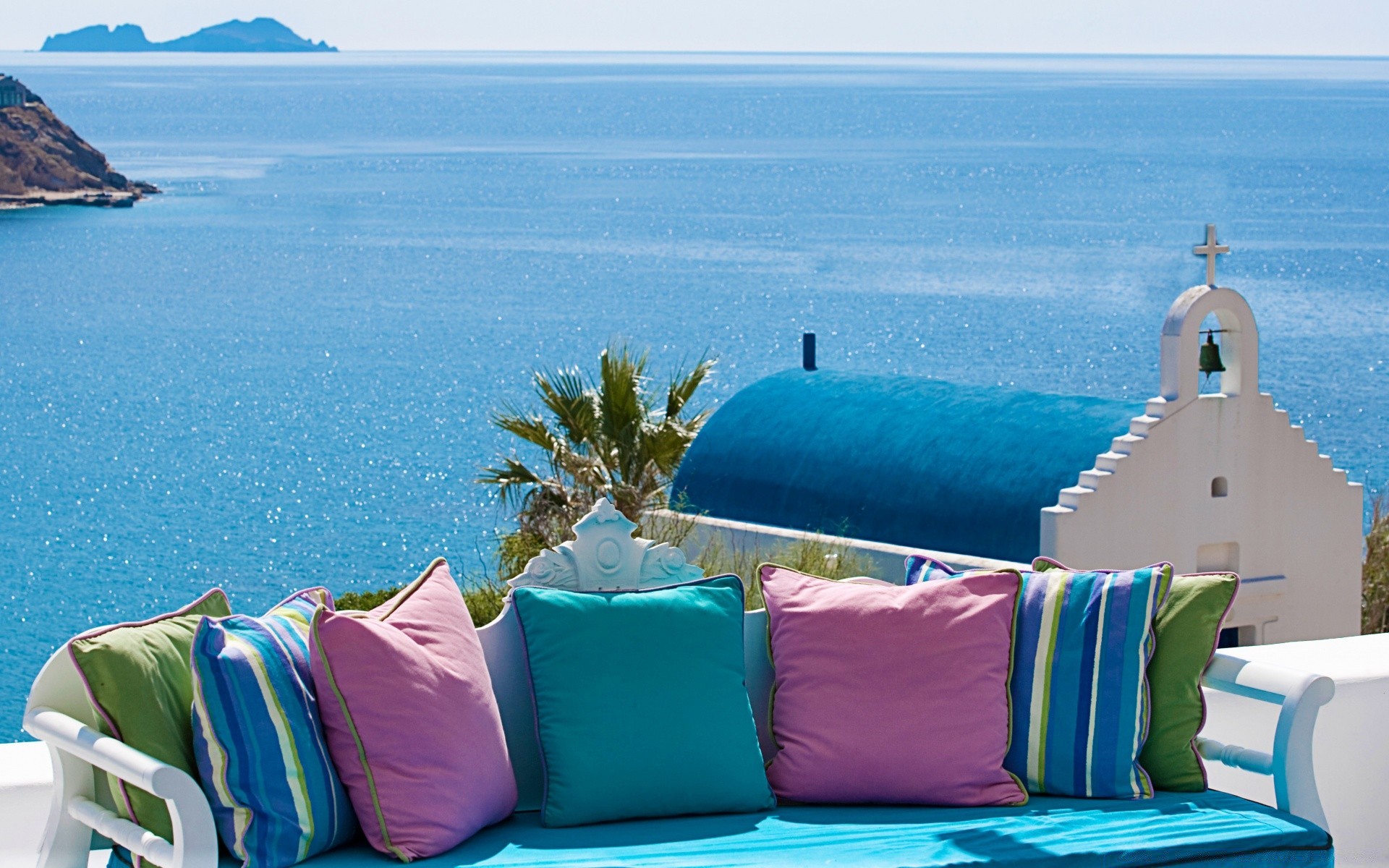Persone che si rilassano sulla spiaggia sotto le palme vicino al mare