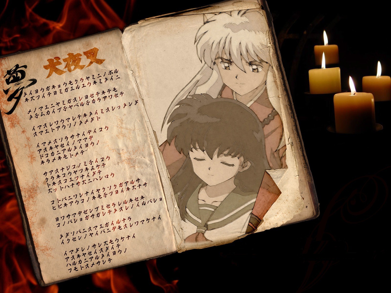Carta cinese e candele accese