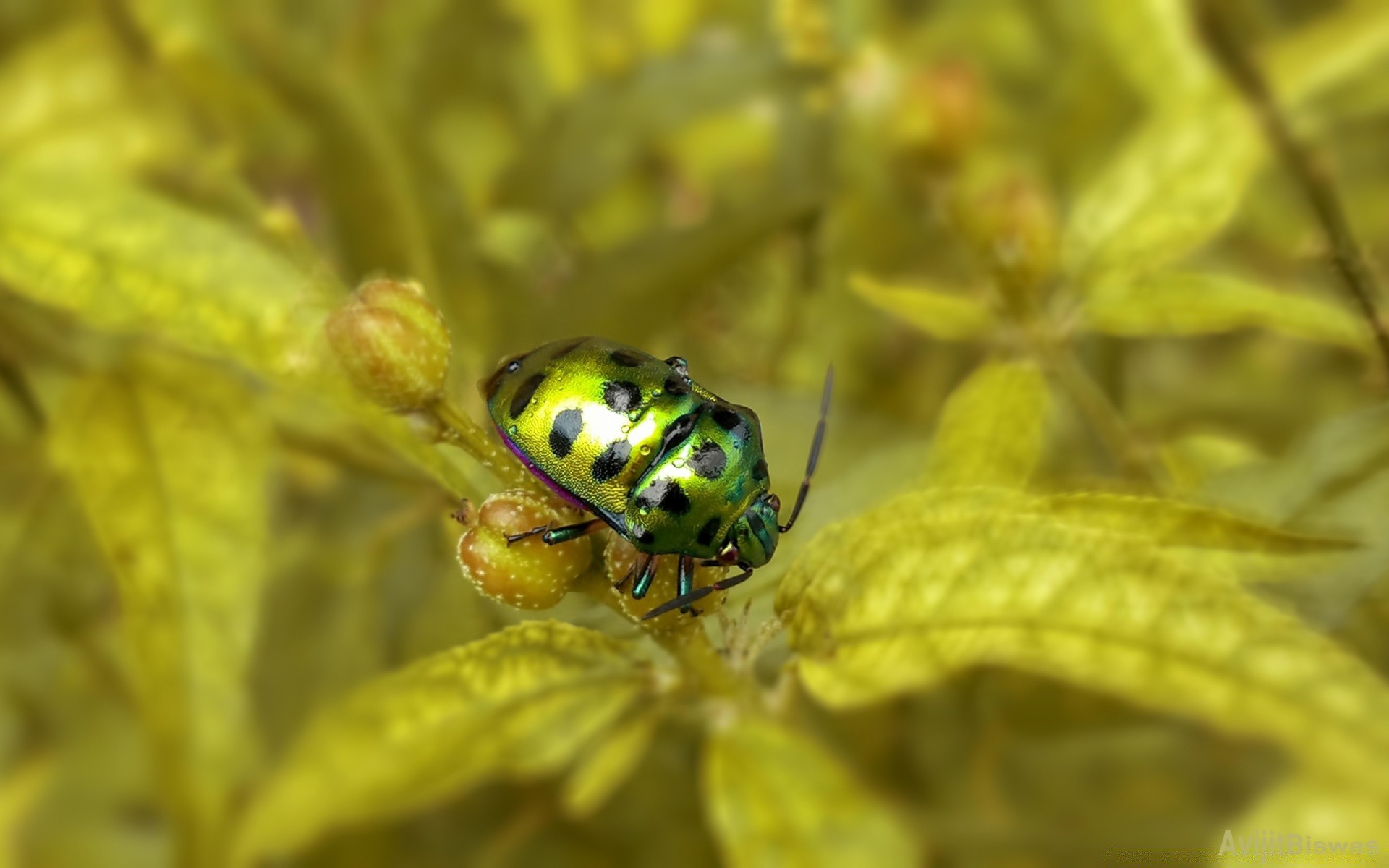Scarabeo verde con punti neri sul retro