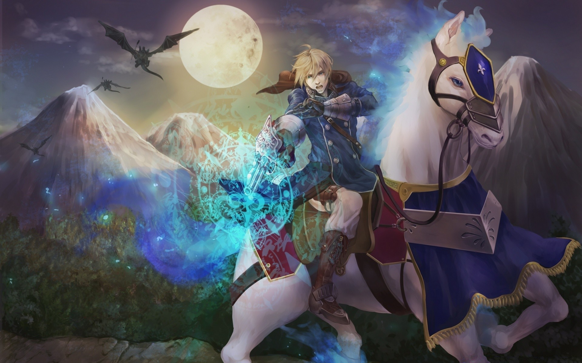 Anime. Guerriero sullo sfondo di bellissime nuvole