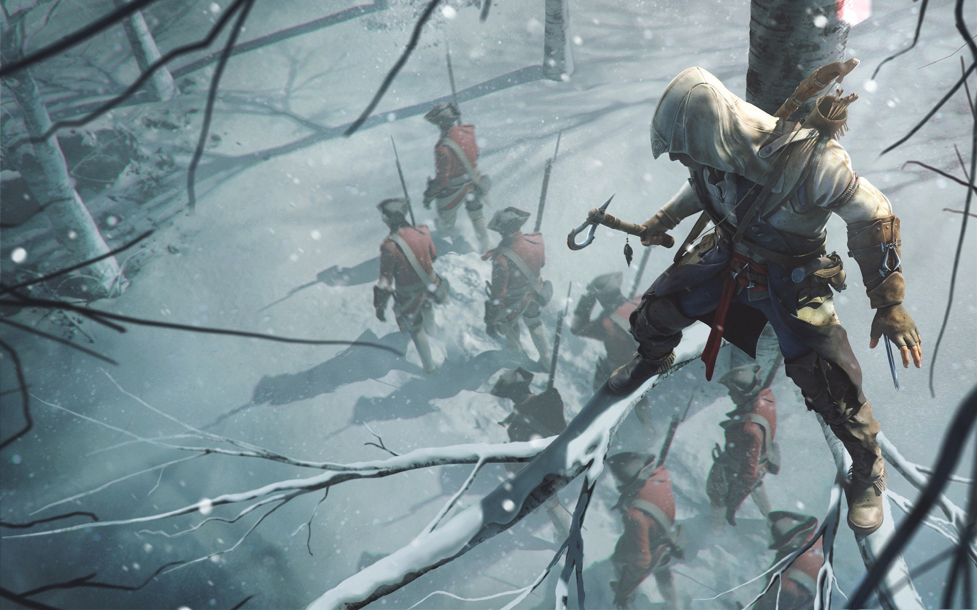Bordo in inverno con alberi di Natale sullo sfondo delle montagne