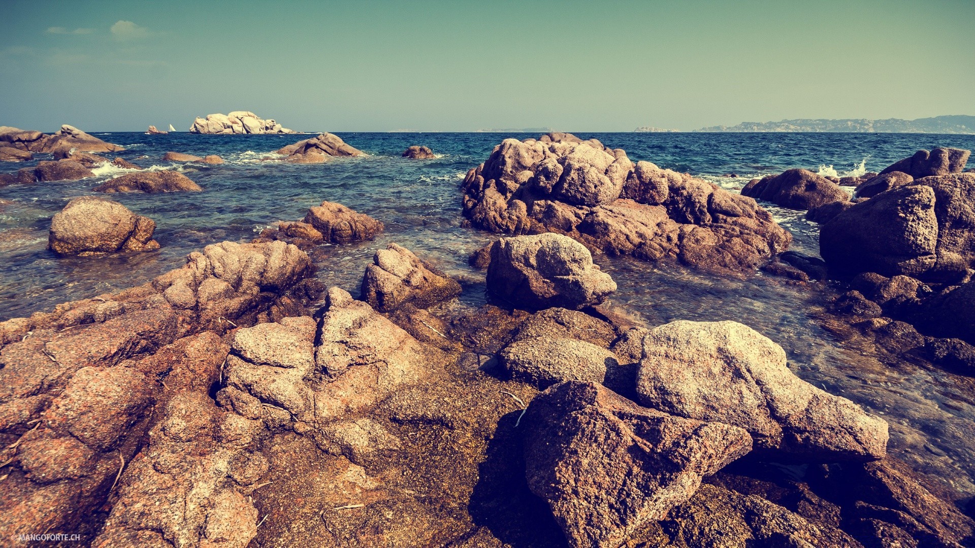 Pietre vicino al mare. bel cielo nel palmo della tua manoPietre vicino al mare. Bel cielo nel palmo della tua mano