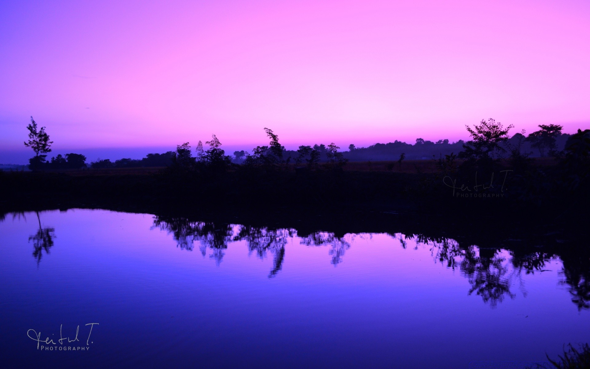 Lago bellissimo tramonto cielo uomo cammina sull'acquaLago bellissimo tramonto cielo uomo cammina sull'acqua
