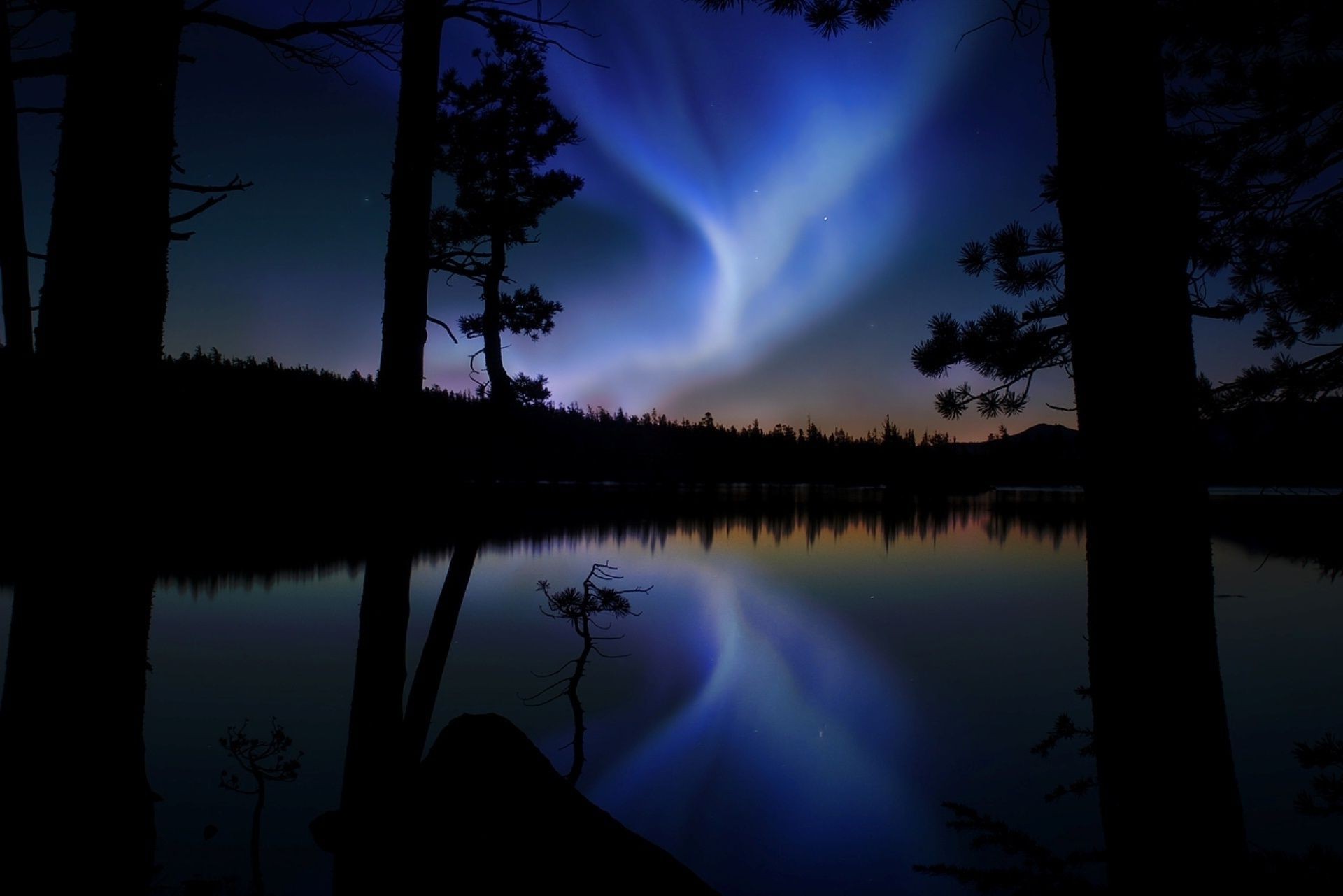 Bellissimo tramonto attraverso le nuvole che si riflettono nel lago