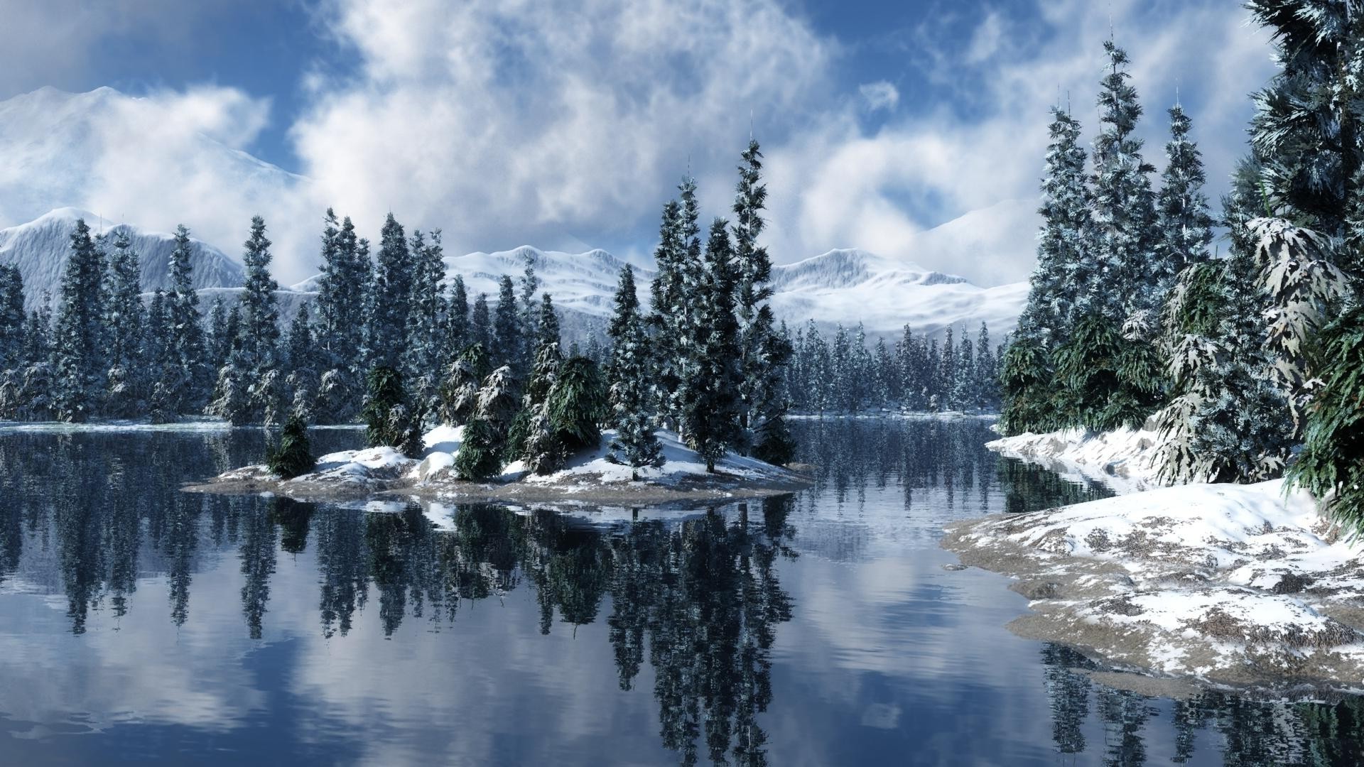 Paesaggio invernale su un bellissimo lago