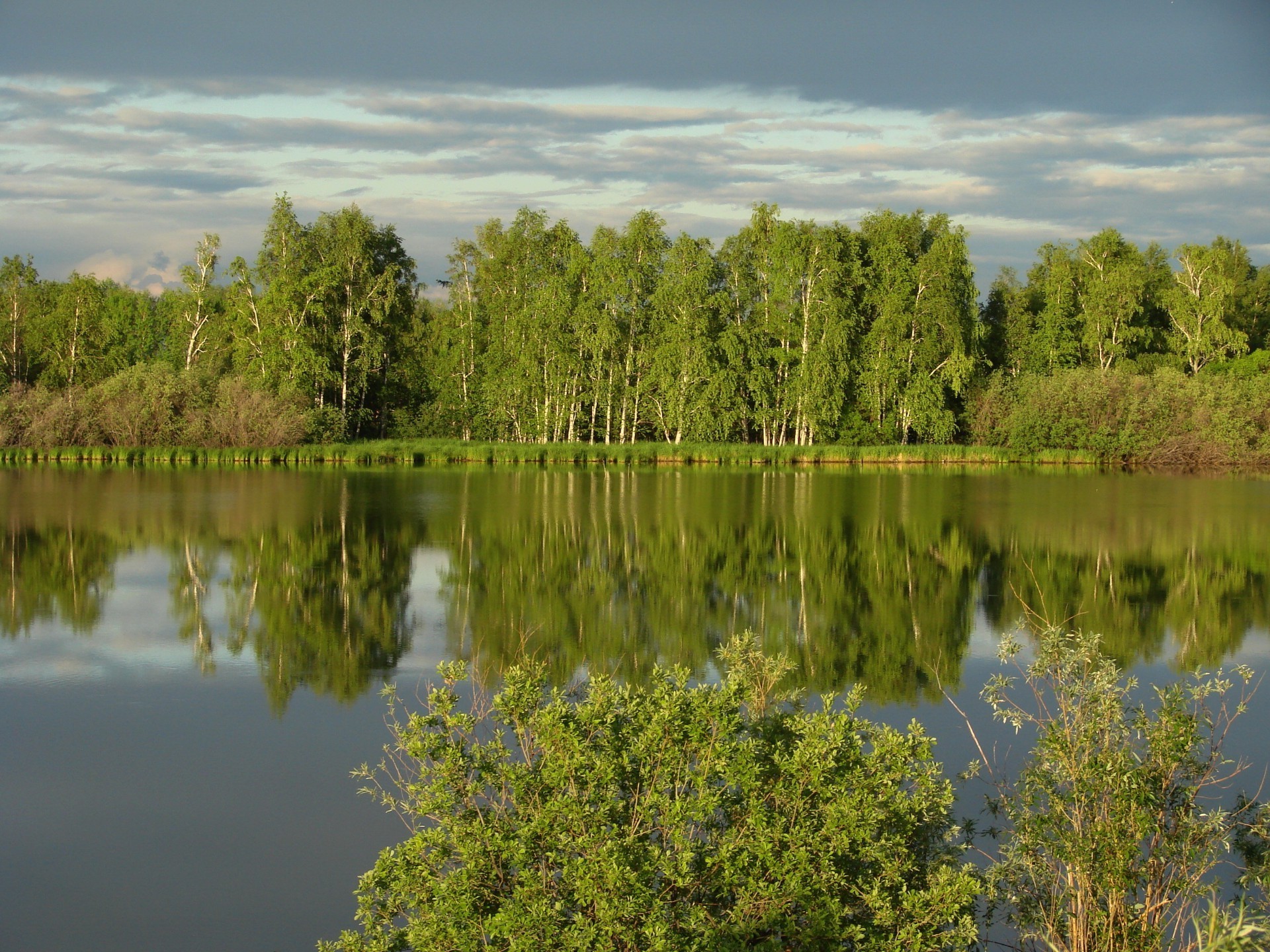 Riflessione della foresta in un lago profondo al crepuscoloRiflessione della foresta in un lago profondo al crepuscolo