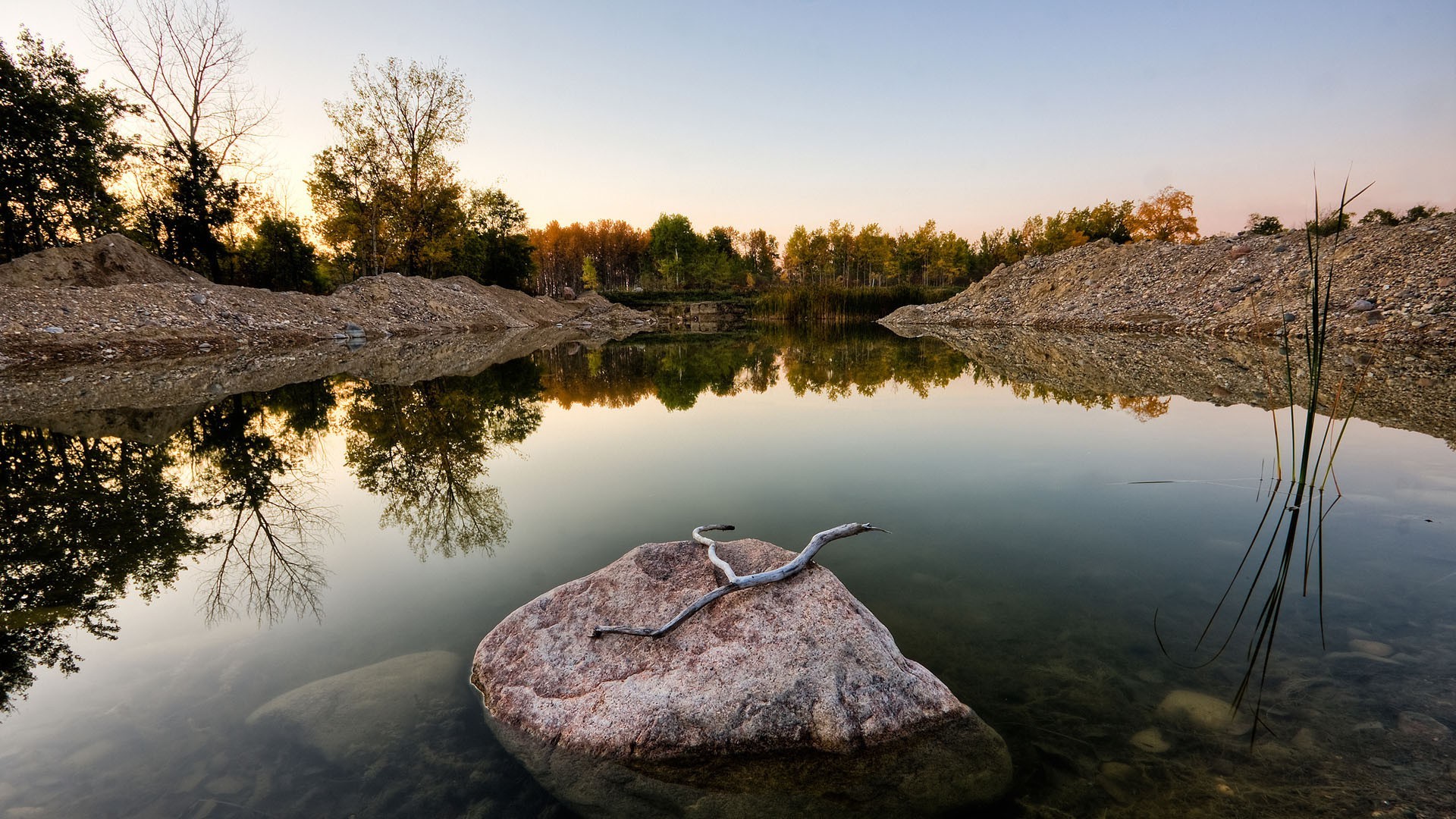 Grande pietra in un piccolo stagno