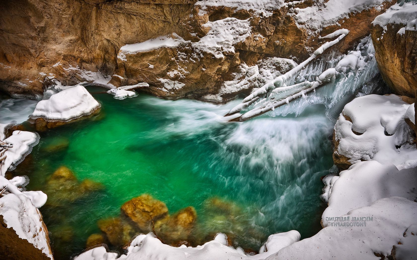 Montagna. Viaggi e montagne. Riflesso nell'acqua. Montagne nella neve