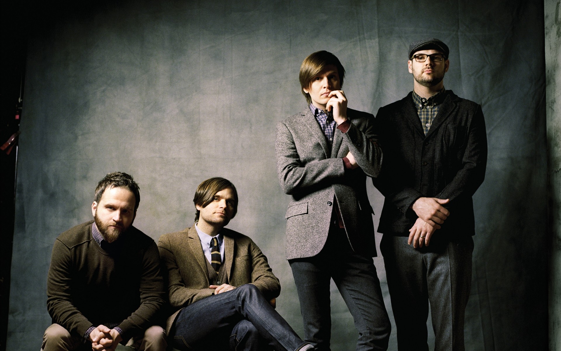 Gruppo musicale di quattro persone in una stanza grigiaGruppo musicale di quattro persone in una stanza grigia