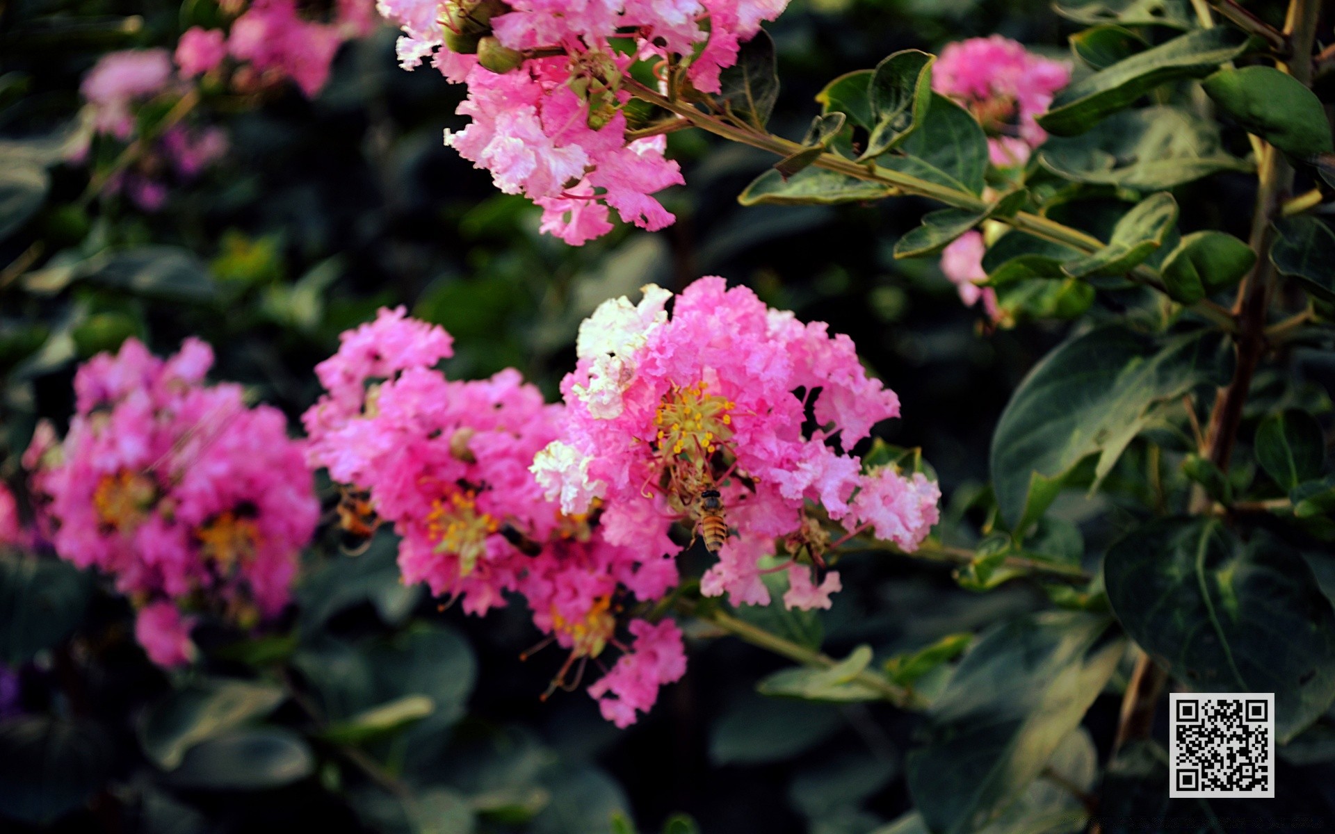 Grandi infiorescenze rosa sullo sfondo del fogliame