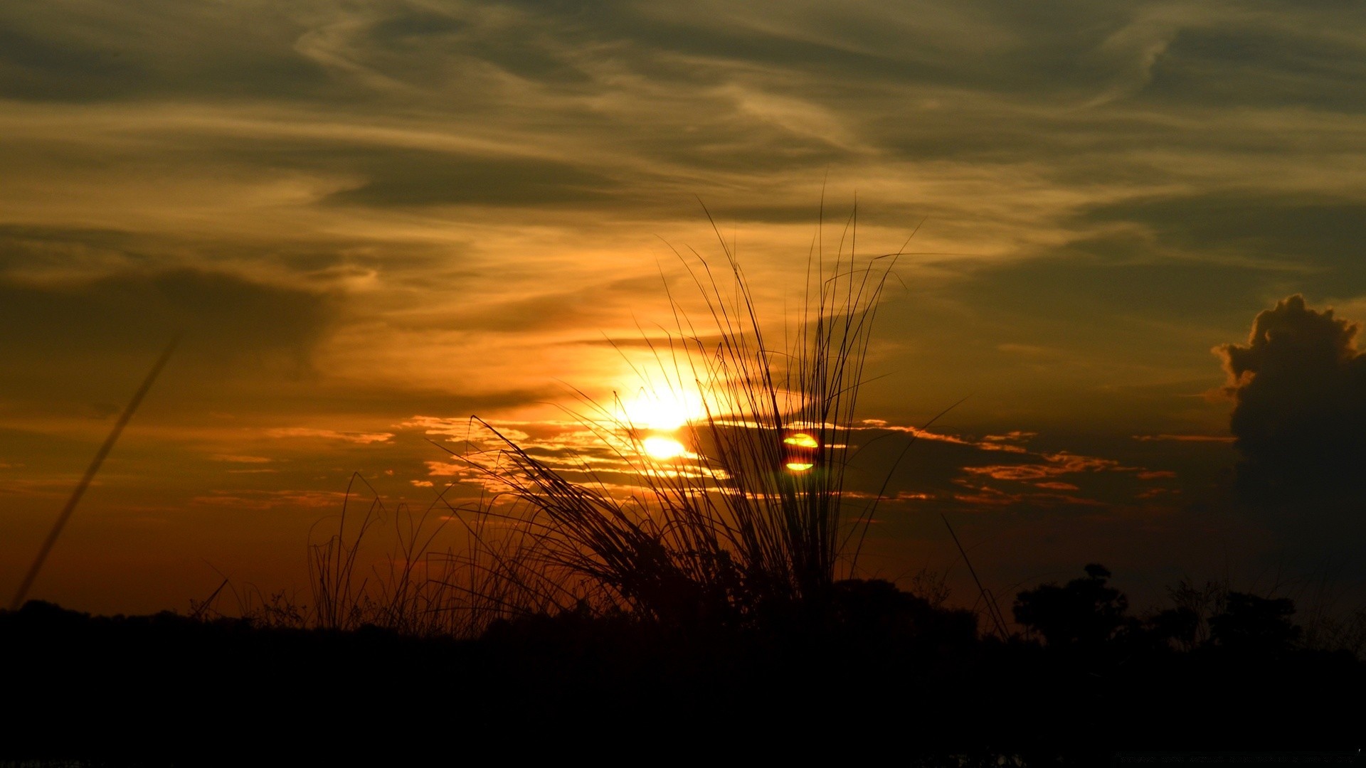 Tramonto luminoso al crepuscolo vicino all'acqua