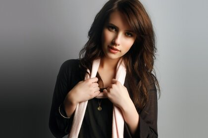 Krosotka dai capelli lunghi in posa su uno sfondo scuroKrosotka dai capelli lunghi in posa su uno sfondo scuro