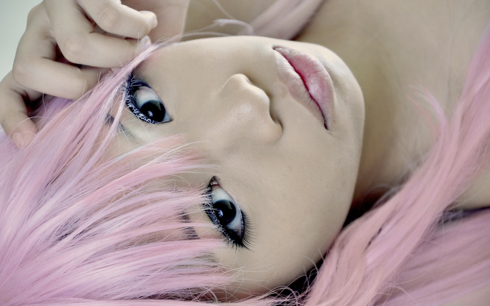 Ragazza carina con i capelli rosa