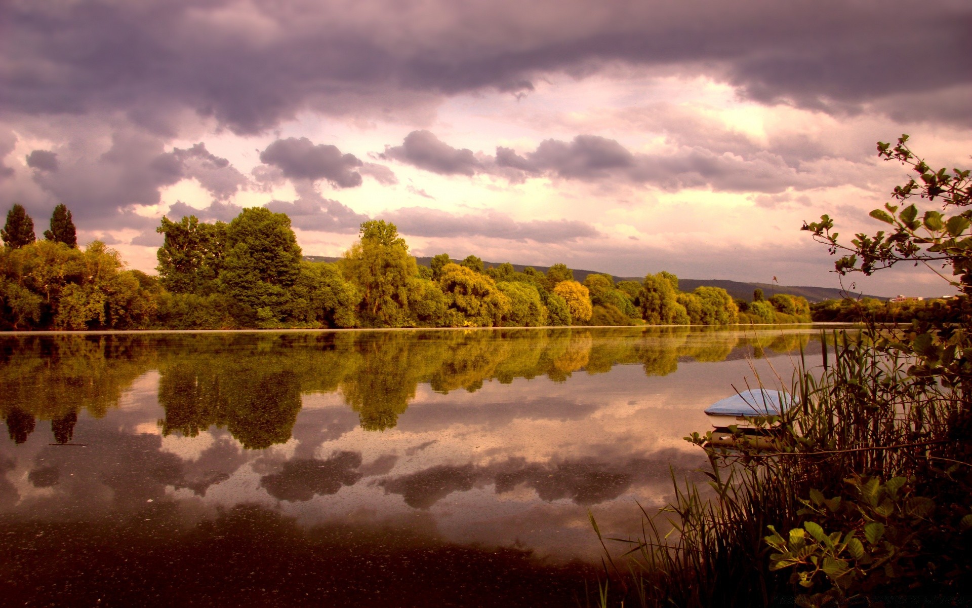 Albero di dinokoye. Foglie rosse. Cielo blu. Autunno