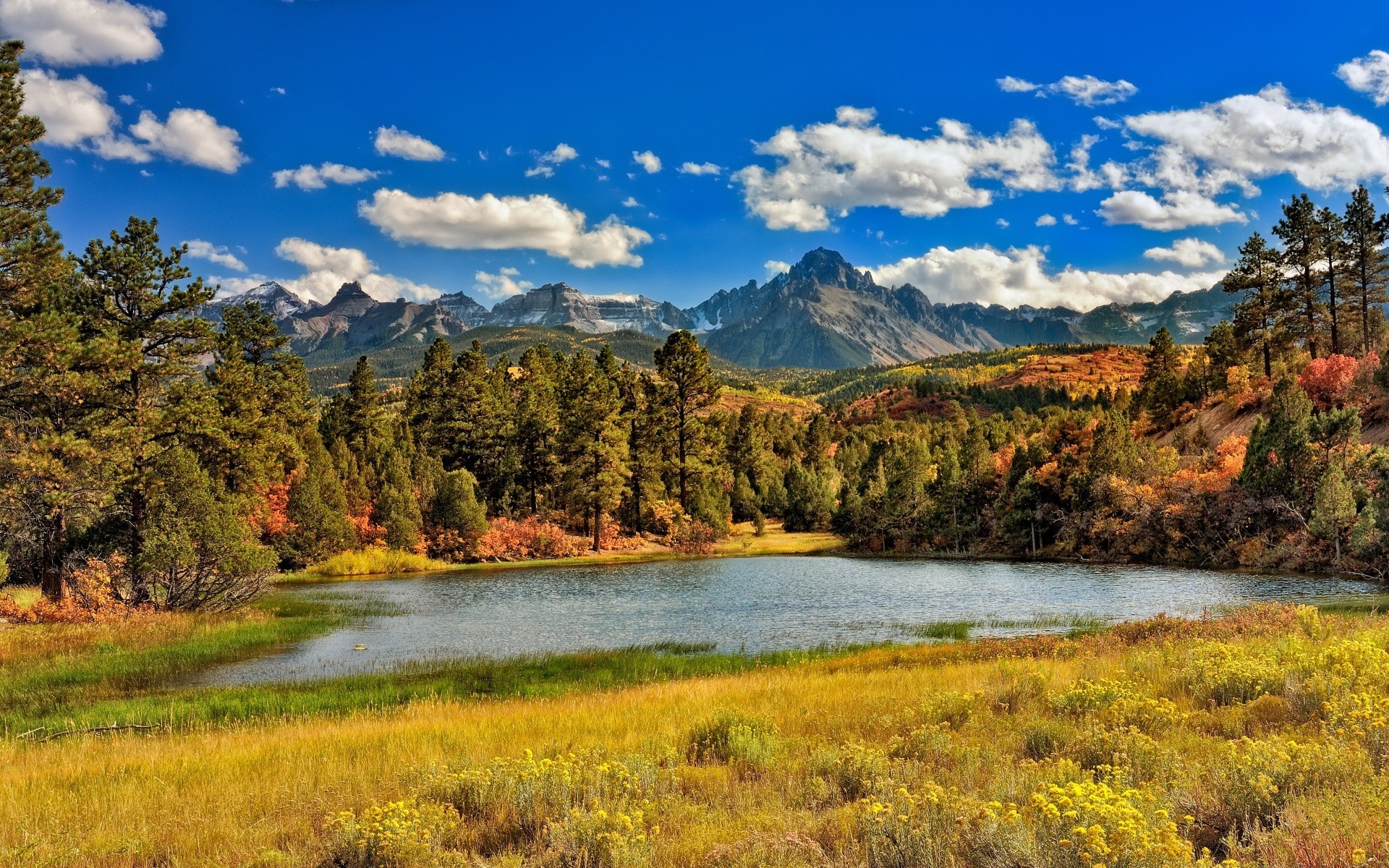 Bellissimo paesaggio con lago e montagne