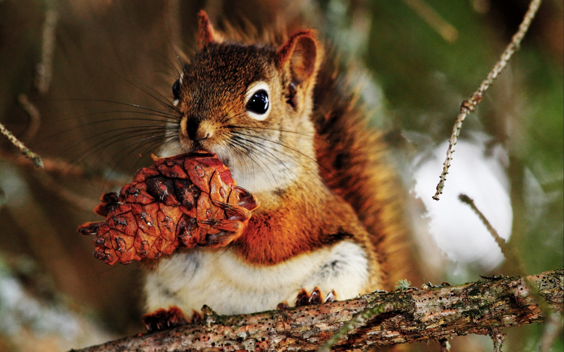 Immagine di una bella ragazza che allatta le bacche di scoiattolo