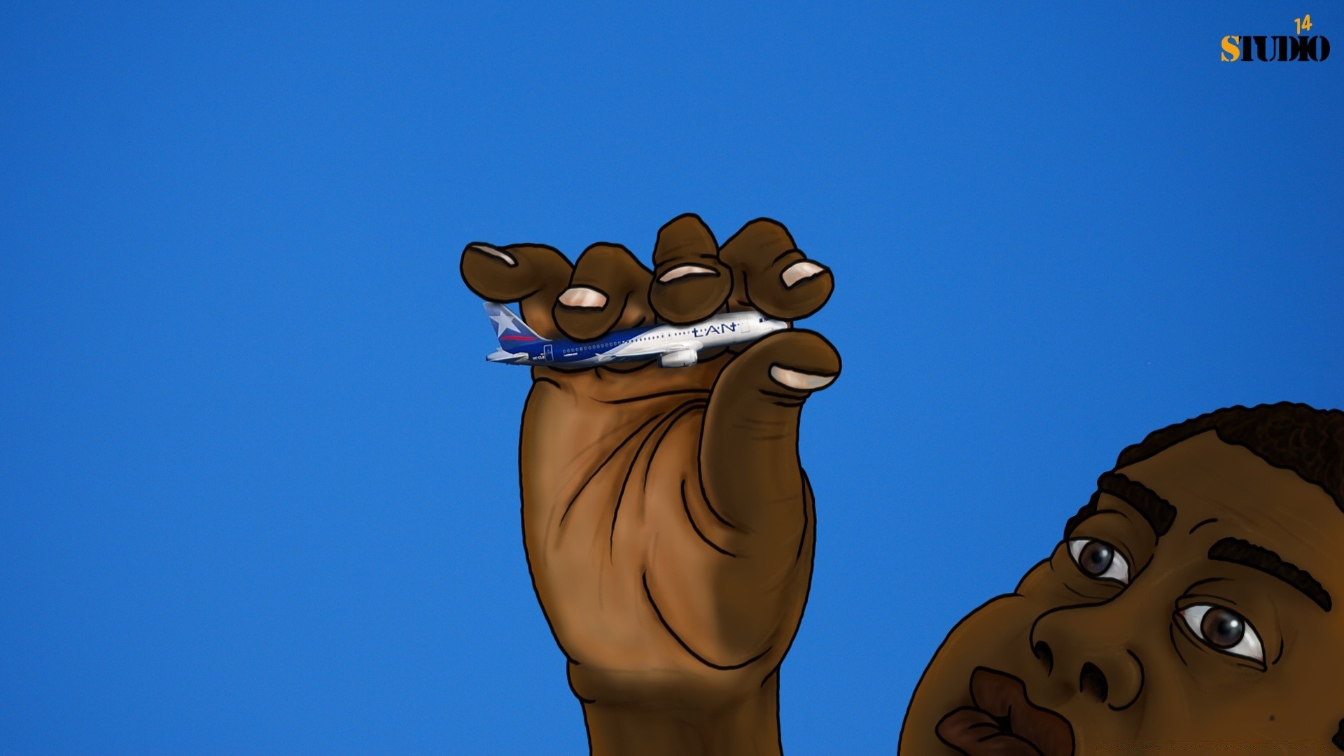 Illustrazione di un uomo nero che tiene in mano un aereo