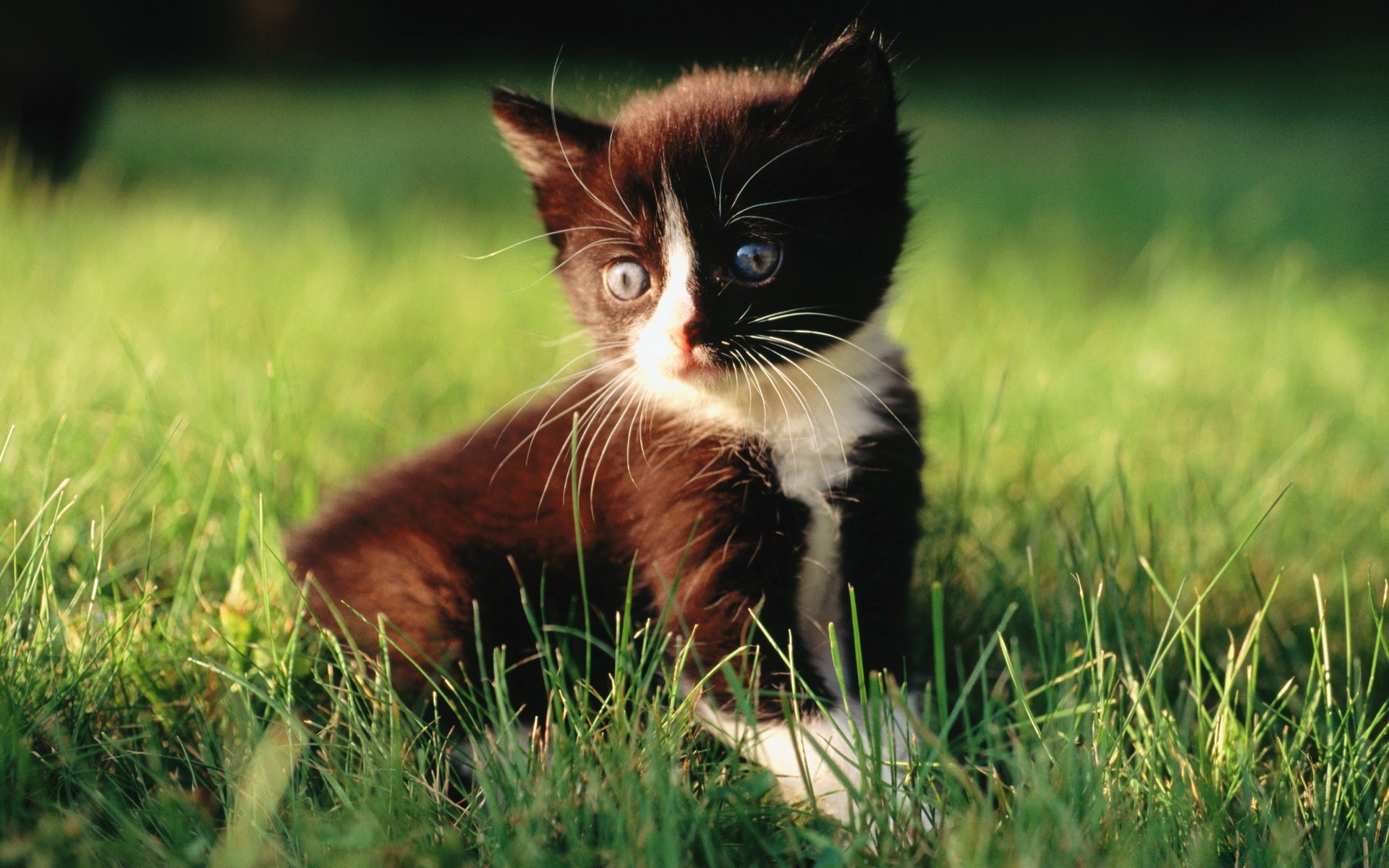 Gattino nero seduto nell erba