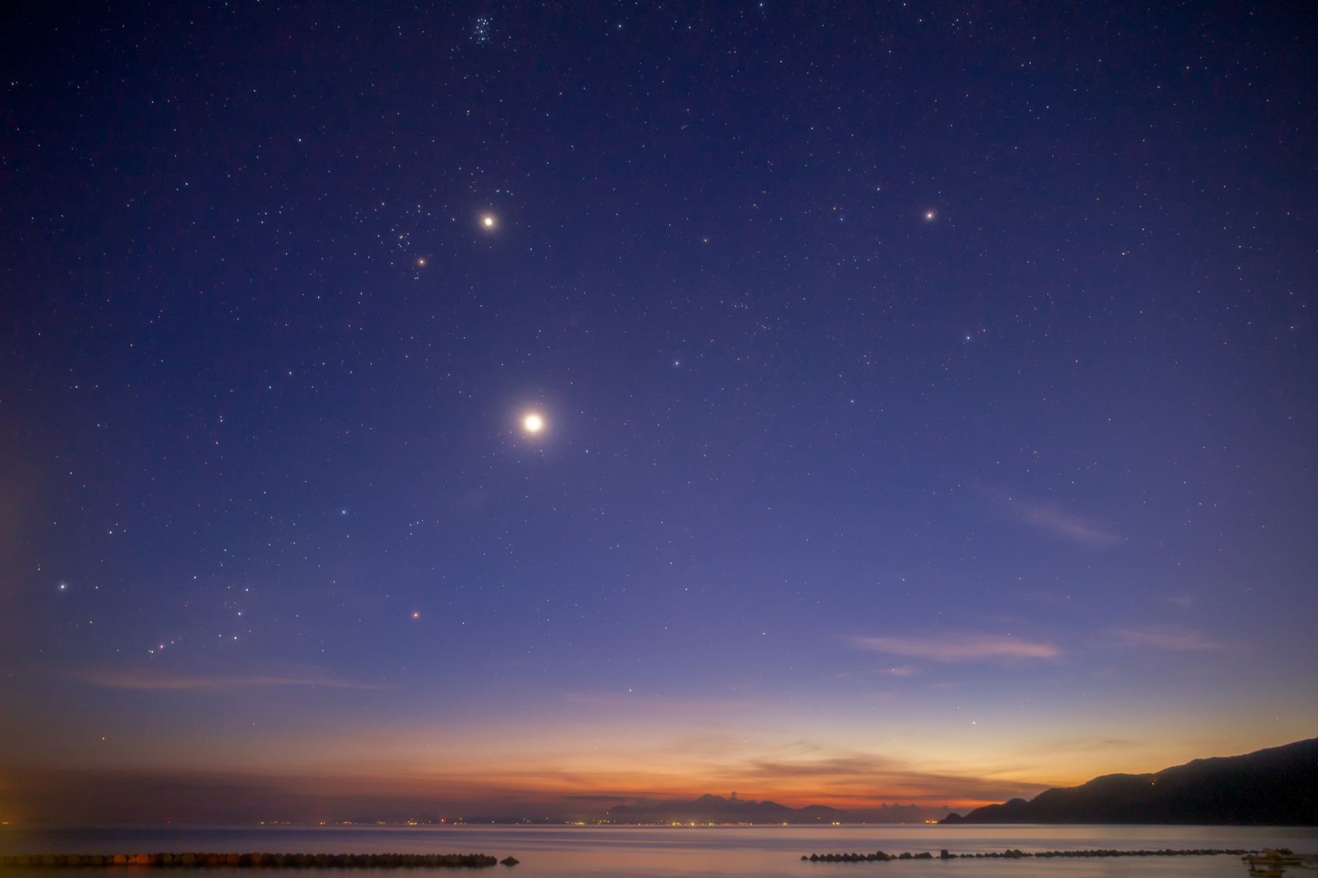 Tramonto rosa. Nuvole rosa sopra il lago. Montagna. Crepuscolo