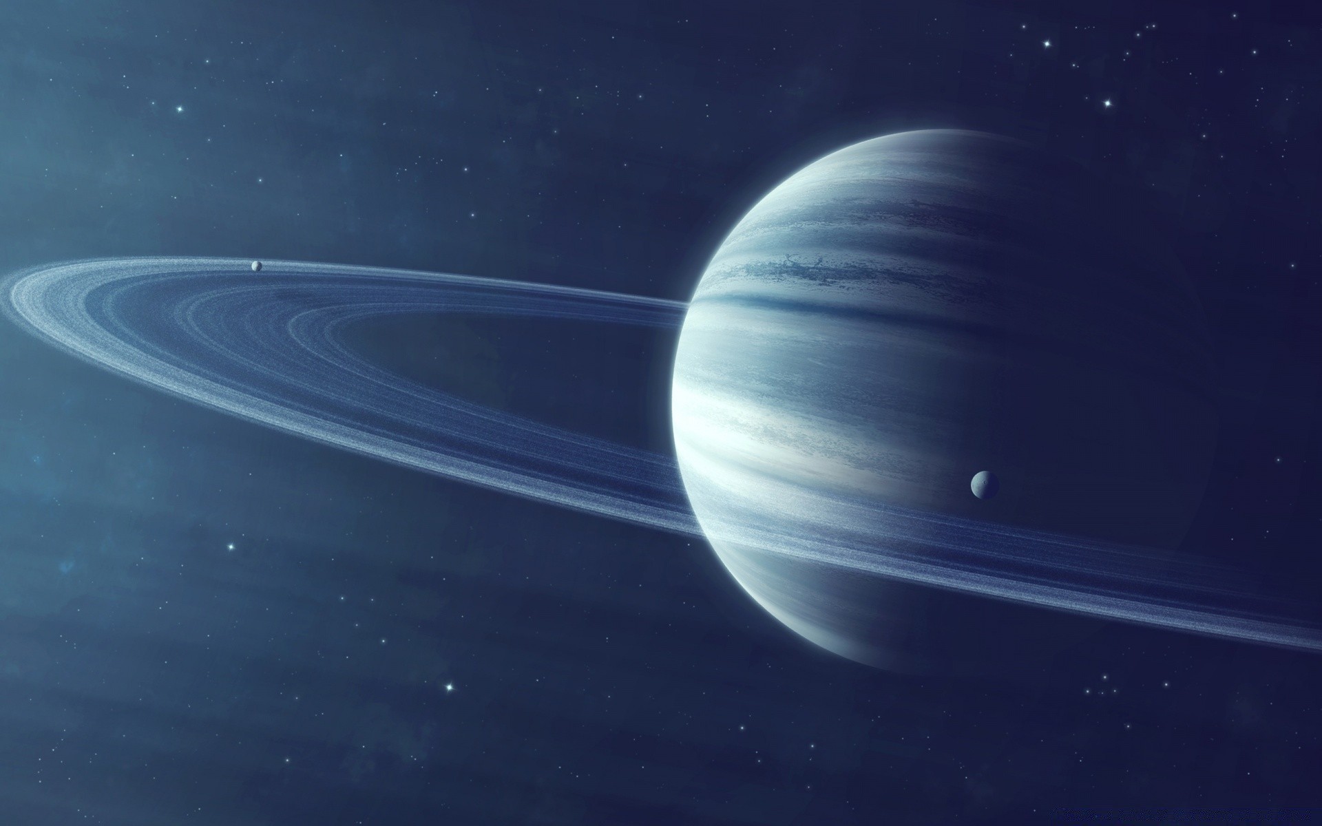 Immagine di un pianeta con dischi sullo sfondo dello spazio