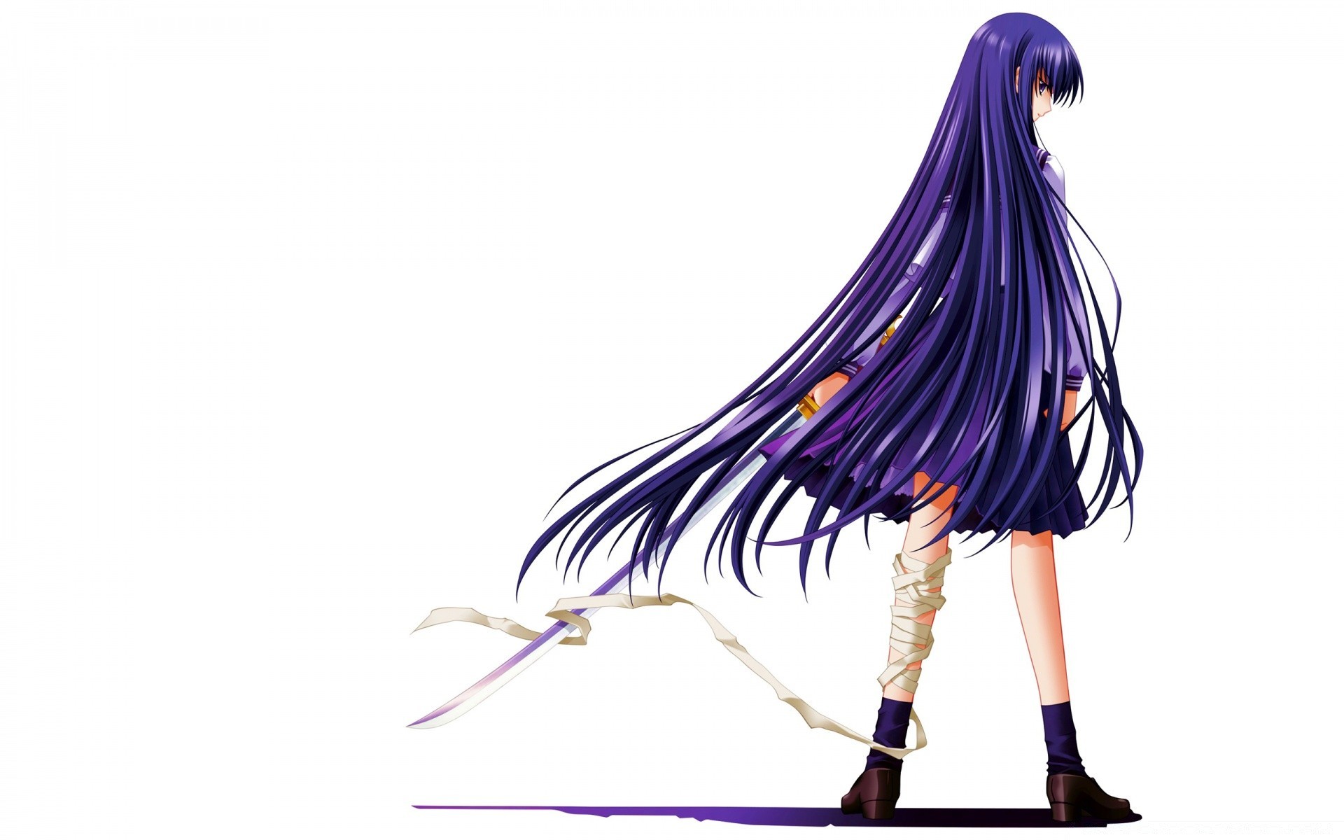 Ragazza in kimono bianco con lunghi capelli bianchi anime