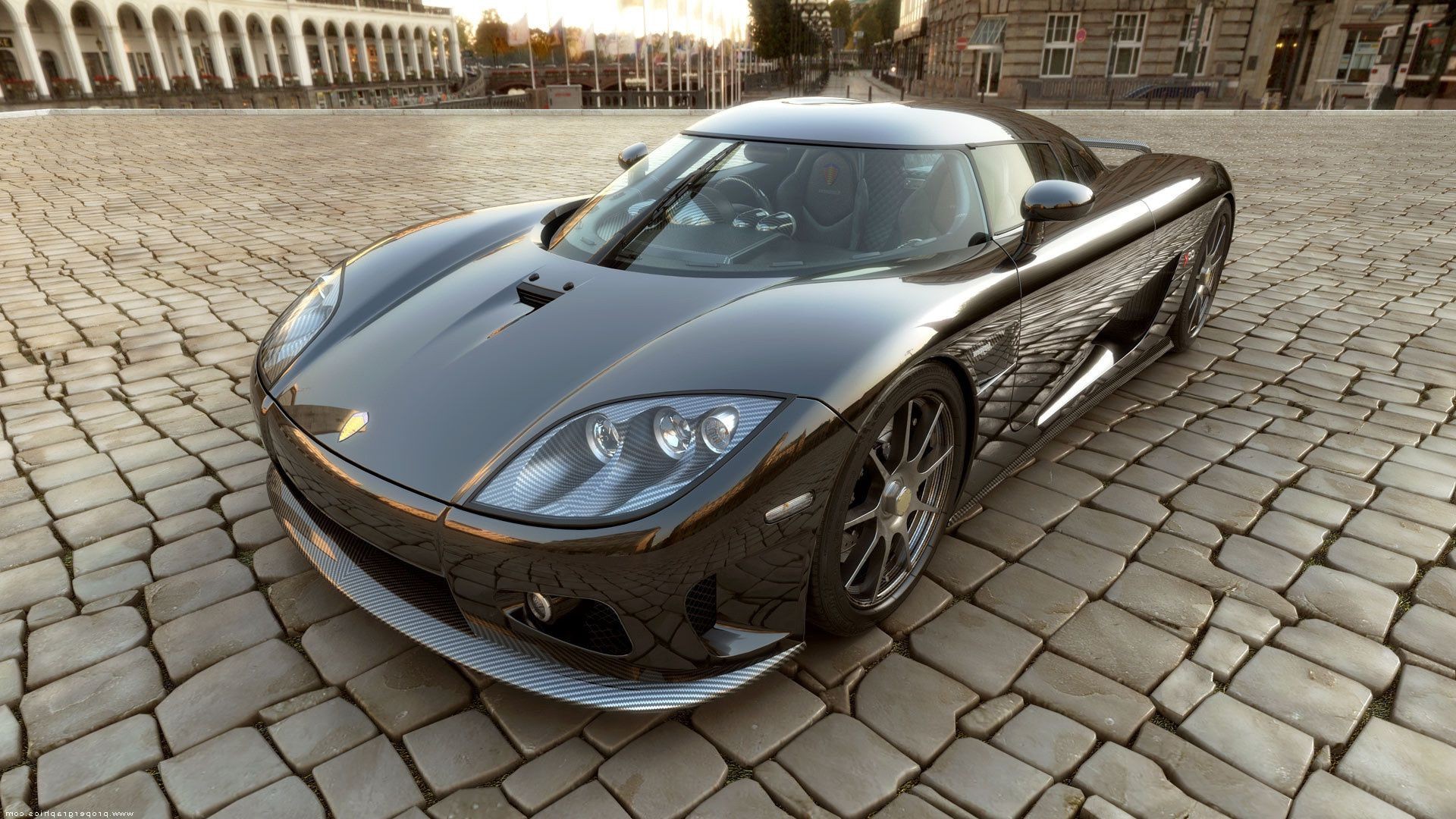 Auto nera sportiva sulla strada contro il muro sotto il tetto