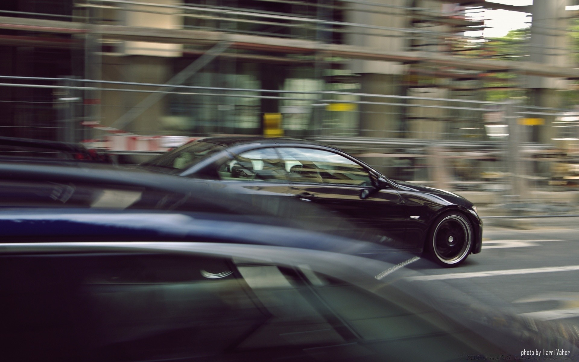Foto di un'Auto veloce sullo sfondo di un'immagine sfocata della città
