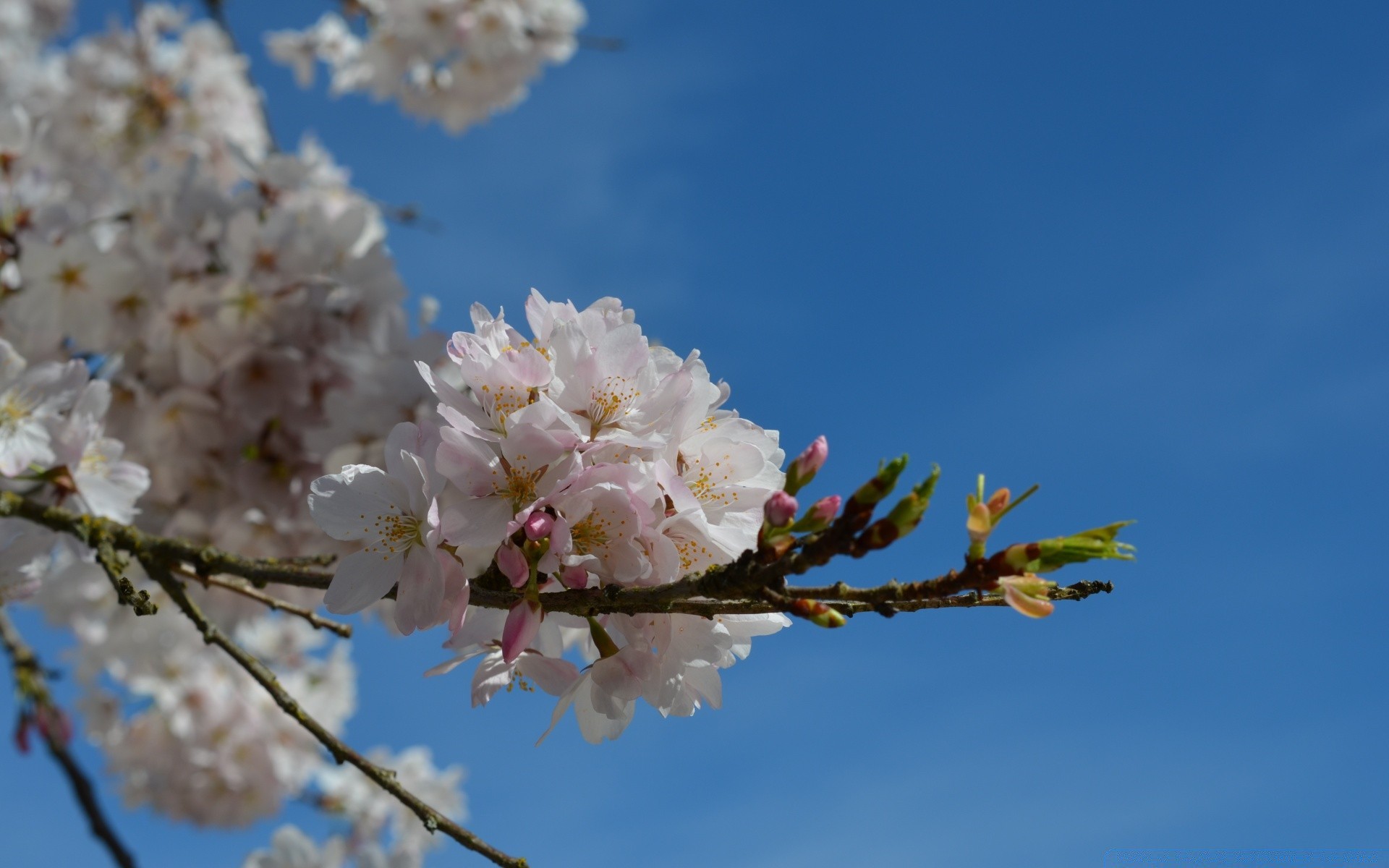 Fioritura vmshnya sullo sfondo del cielo blu