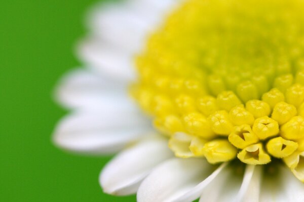 Primi piani di fiori. Camomilla. Sfondo verde. Piccolo sole
