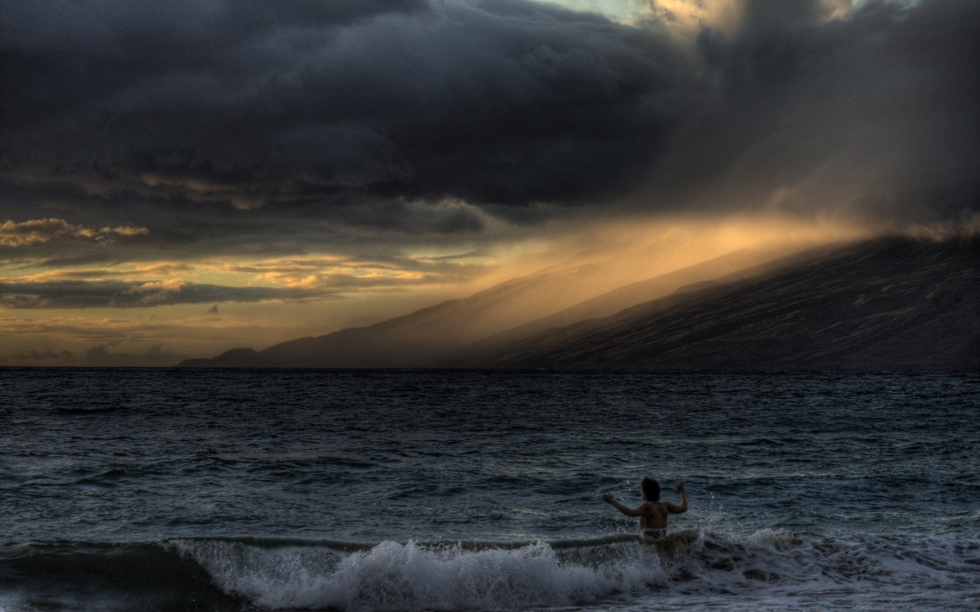 L'uomo si arrese agli elementi del mare della seraL'uomo si arrese agli elementi del mare della sera
