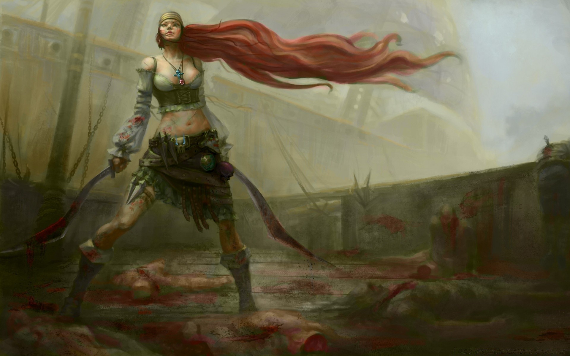 Ragazza dei cartoni animati con due pugnali insanguinatiRagazza dei cartoni animati con due pugnali insanguinati