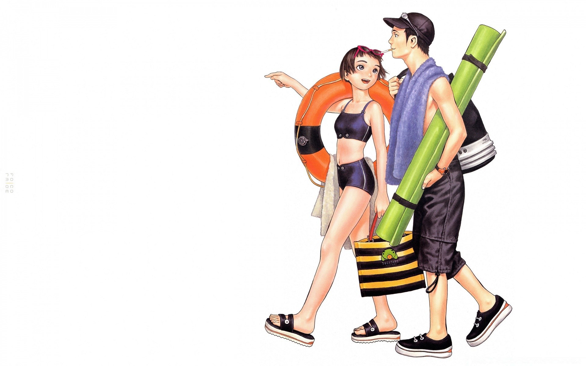 Coppia animata che va in spiaggia