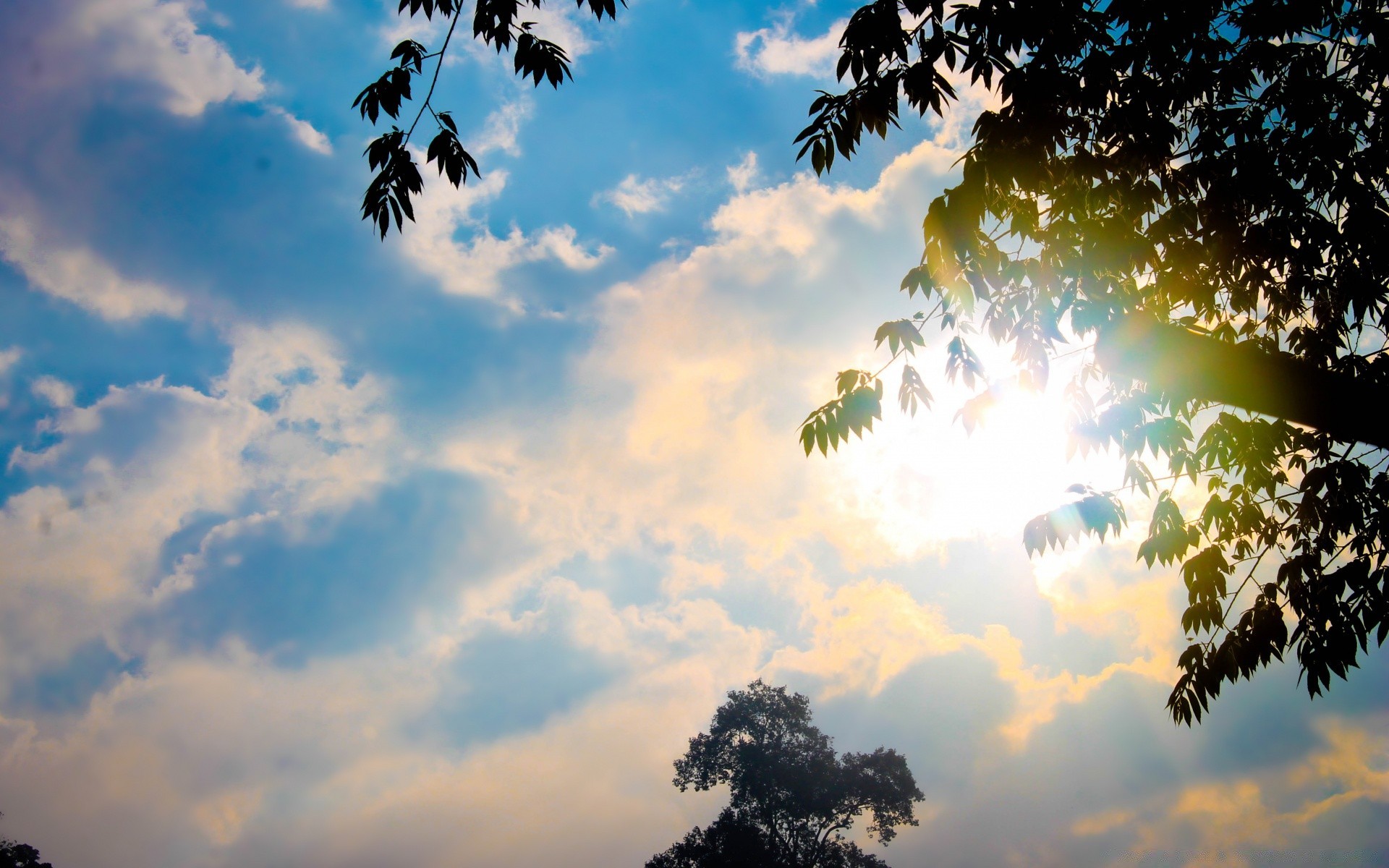 Cielo serale con sagoma di nuvole sullo sfondo del sole al tramonto