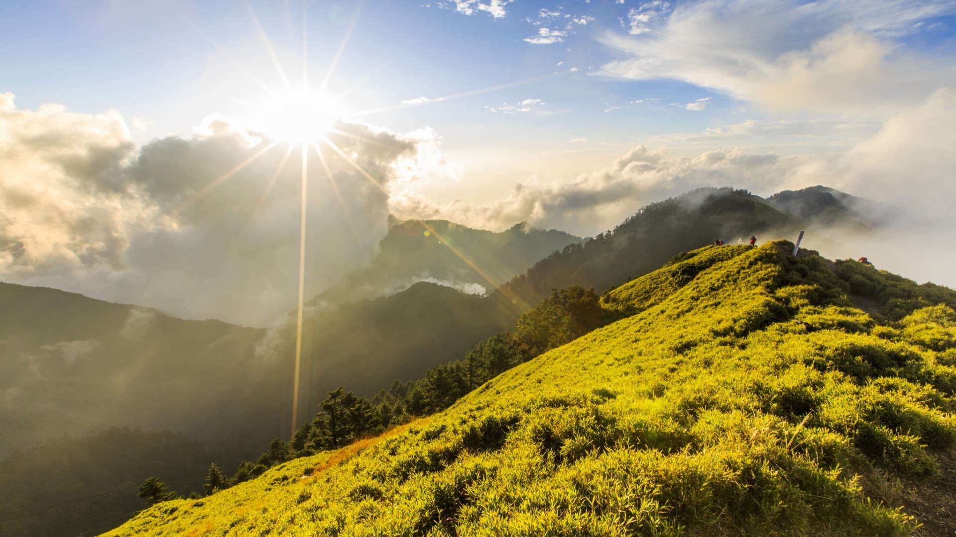 Luce del sole sulle verdi colline