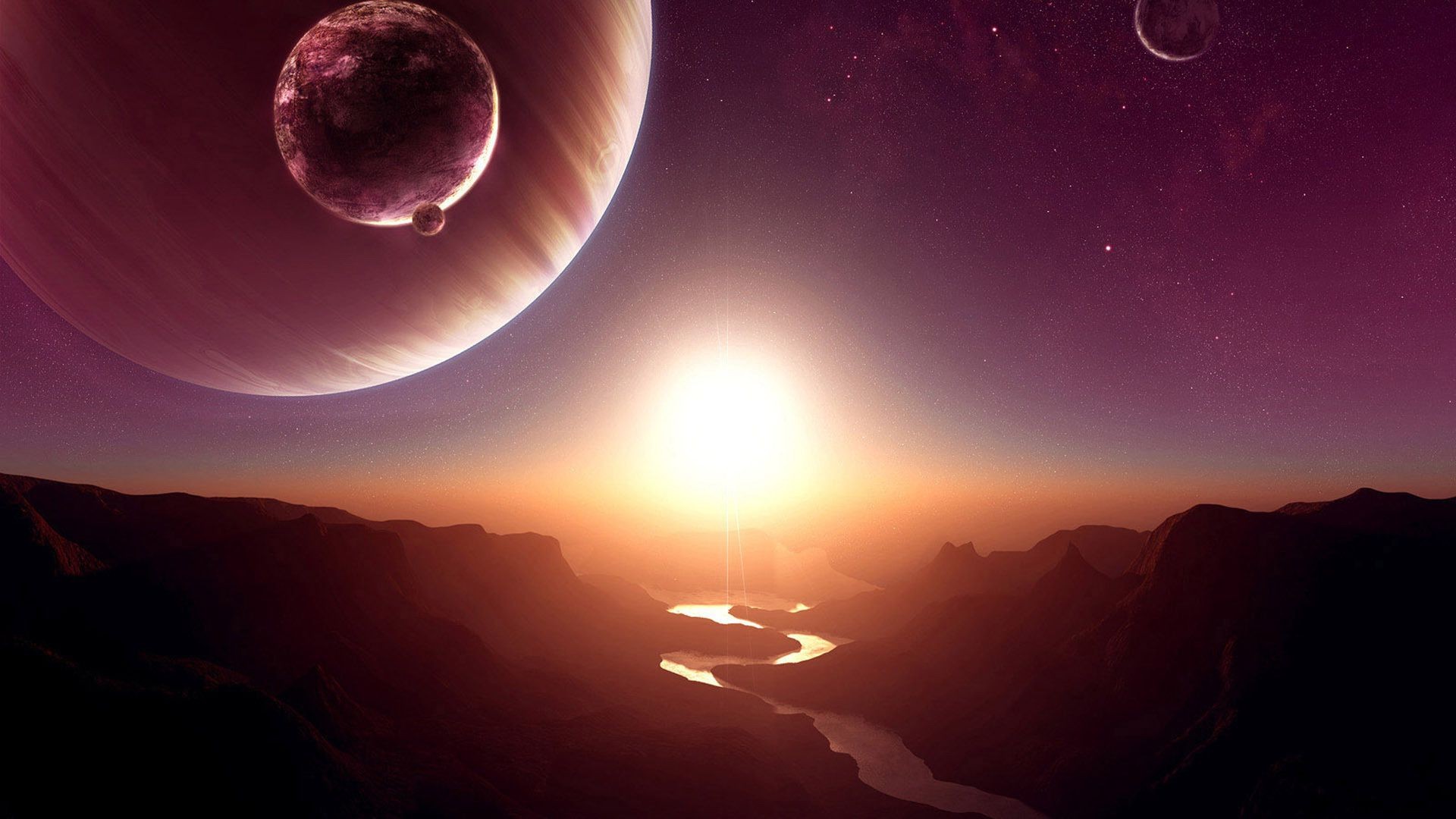 Spazio Canyon fiume stelle sole pianeta satellite