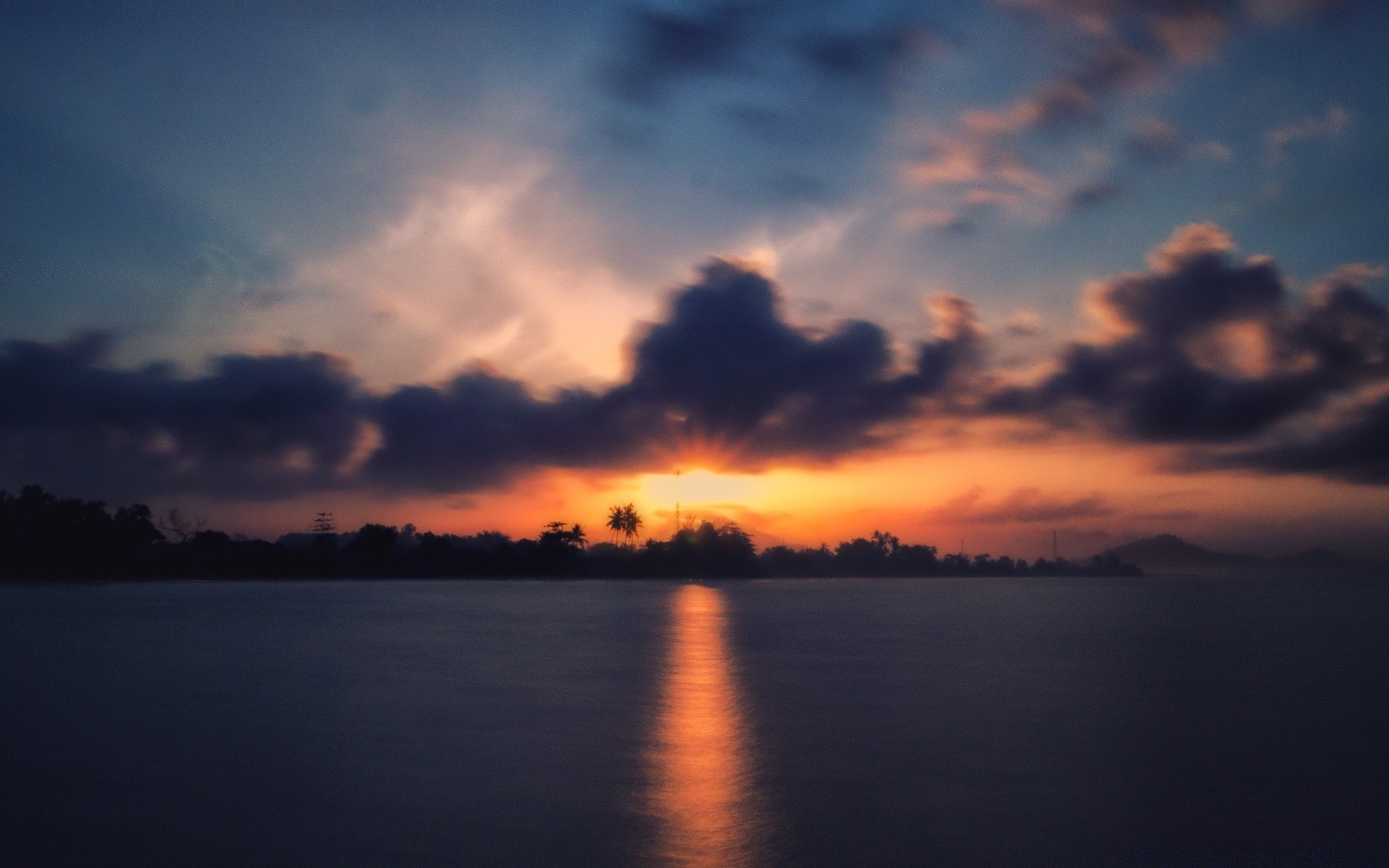 Cielo serale con sagoma di nuvole sullo sfondo del sole al tramonto