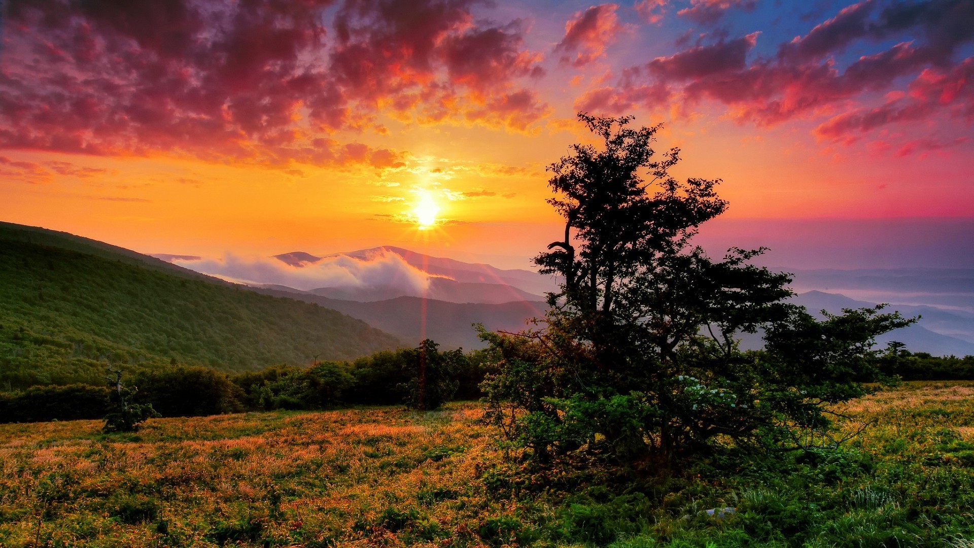 Il sole sorge in una bellissima valle