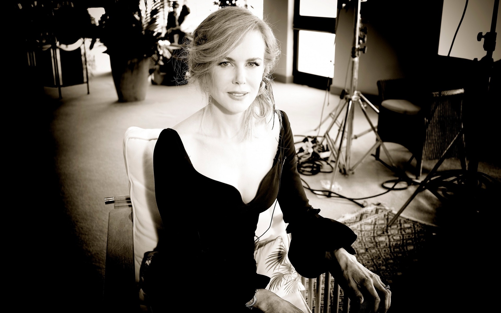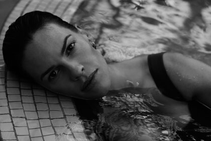 Foto monocromatica di una ragazza in piscina