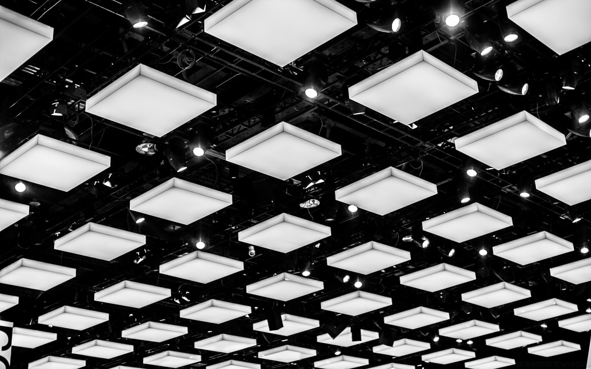 Ragnatela al centro con ragno sfocato in bianco e nero